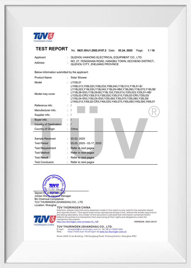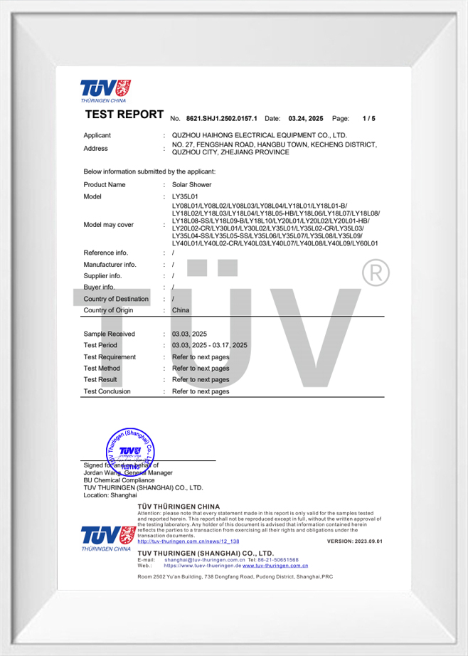Solární sprchové příslušenství